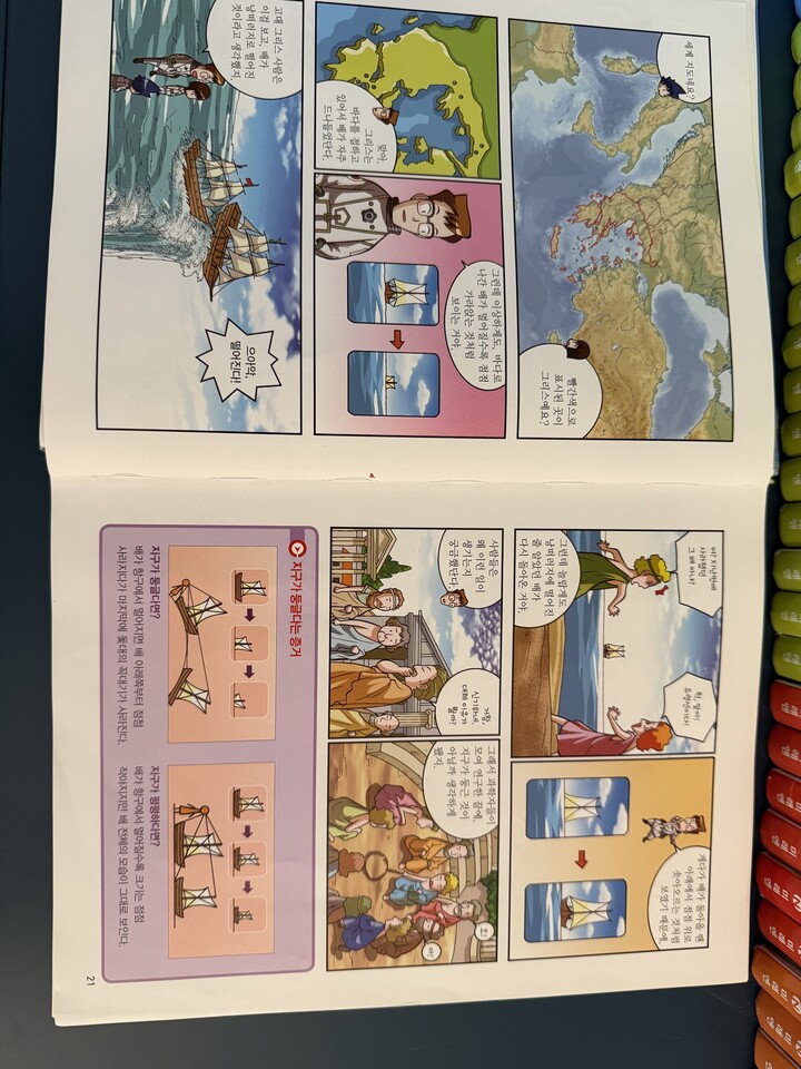 한글을 모를때도 만화보듯이 보면서 궁금한장면은 한글을 물어보면서 읽엇어요. 한글도 이책을 반복적으로 읽으면서 많이 늘엇고 상식도 엄청나요. 이책은 두고두고 보는책이지만 한국으로 이사가면서 책을 내놓습니다.