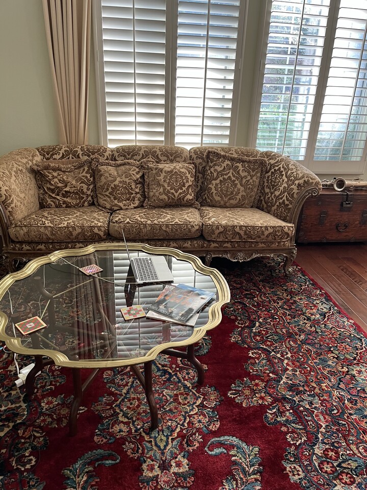 실크원단에 아주가볍읍니다 맞춤쇼파 상태좋아요. 별로사용하지 않았읍니다. 테이블과 함께 500불
