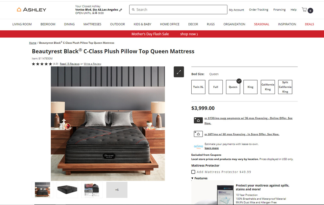 온라인이나 가구점에서 세일해도 3500불 이상씩 팔리는 제품입니다.