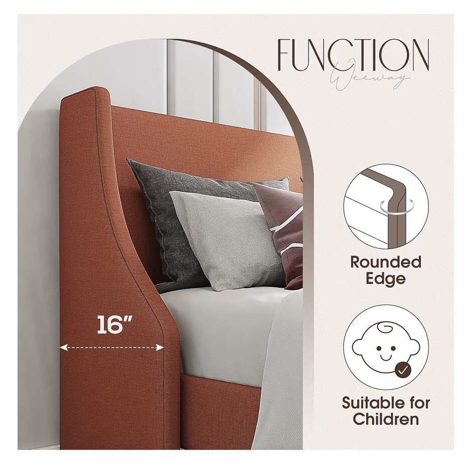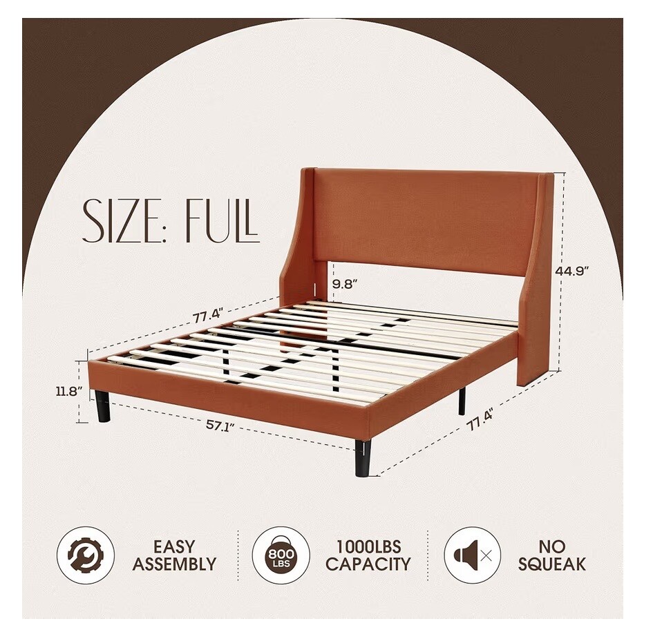 Full 사이즈 베드 프레임 판매합니다. (Full Size Bed Frame with Upholstered Headboard, No Box Spring Needed, Mattress Foundation, Easy Assembly, Orange)