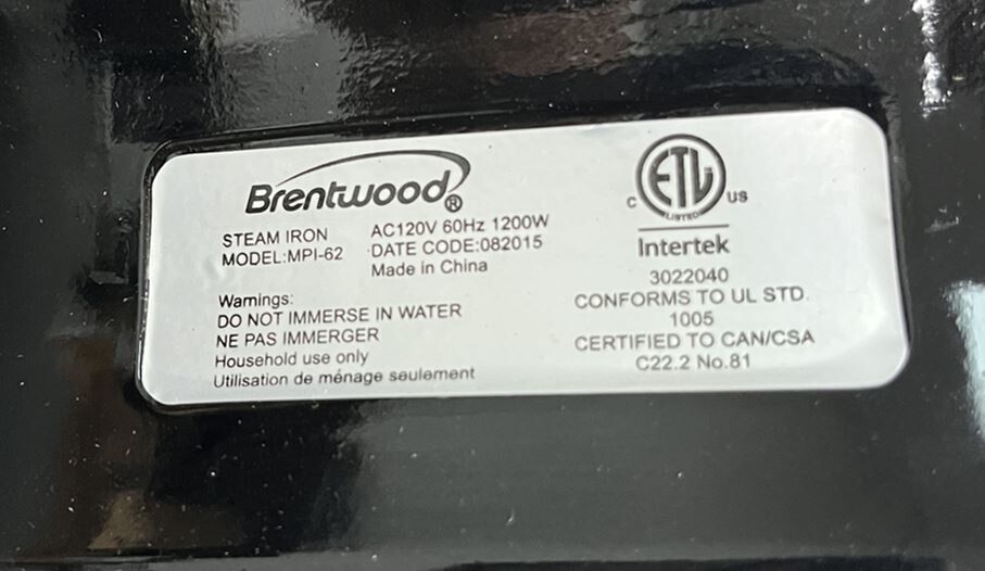 이 제품은 **Brentwood 스팀 다리미 (모델 MPI-62)**입니다.