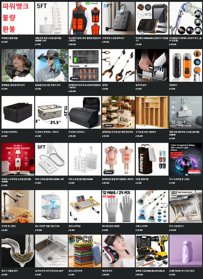 - 하루혹은 이틀에 물건 최소 하나씩 올립니다. ( 주로 저녁 9시 이후 )