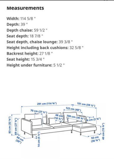 사진에 기재된 표준 Söderhamn 규격 참고해주세요.