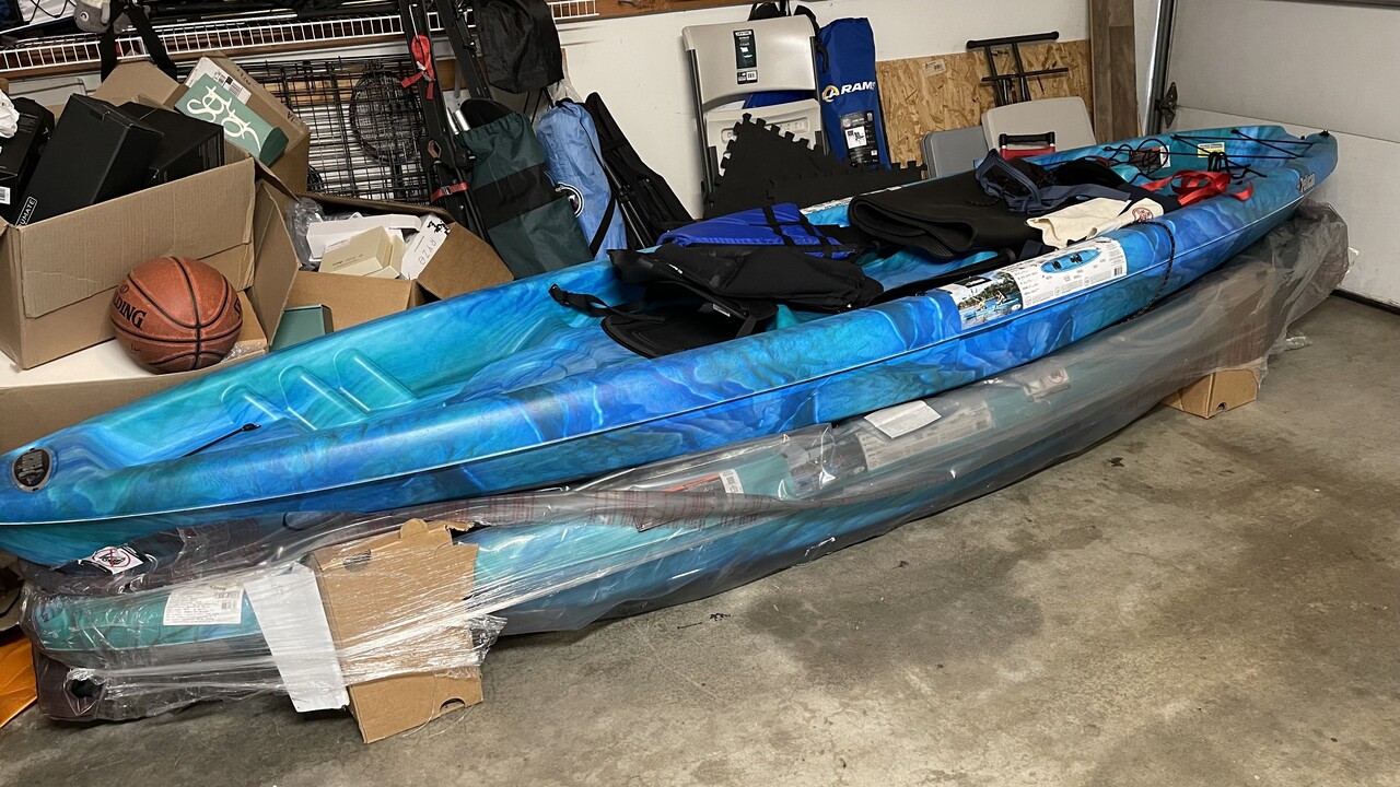 펠리컨 tandem 13 feet 짜리 2 인용 + 아이 또는 멍멍이 같이 탈수 있는 커다란 카약 입니다 ..