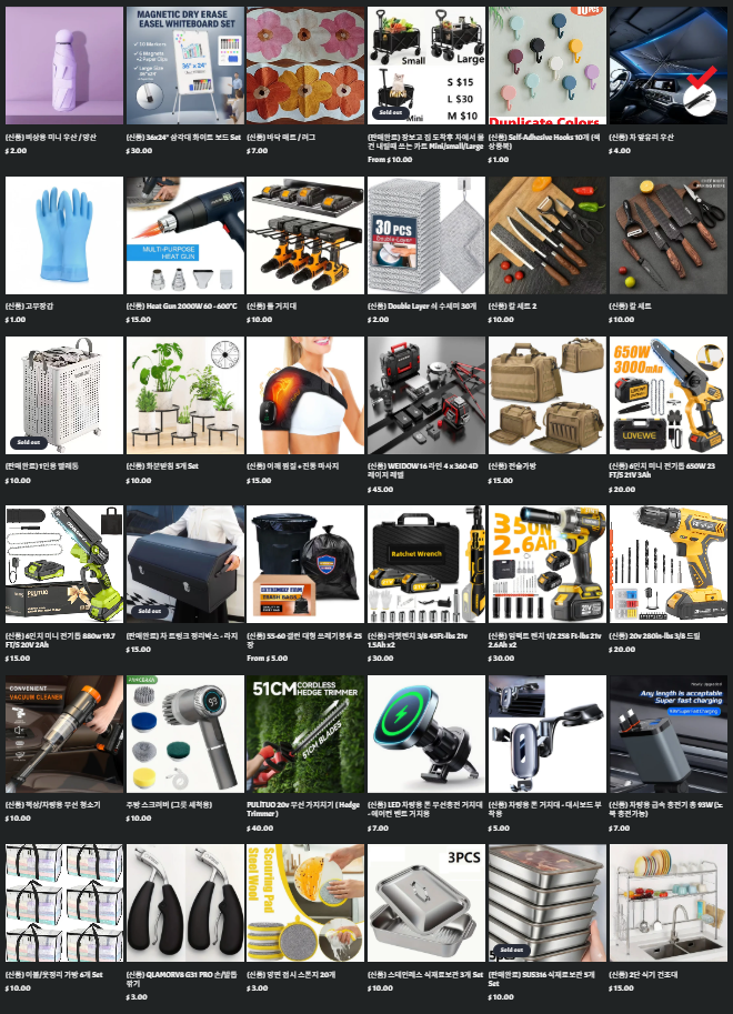 - 하루혹은 이틀에 물건 최소 하나씩 올립니다. ( 주로 저녁 9시 이후 )