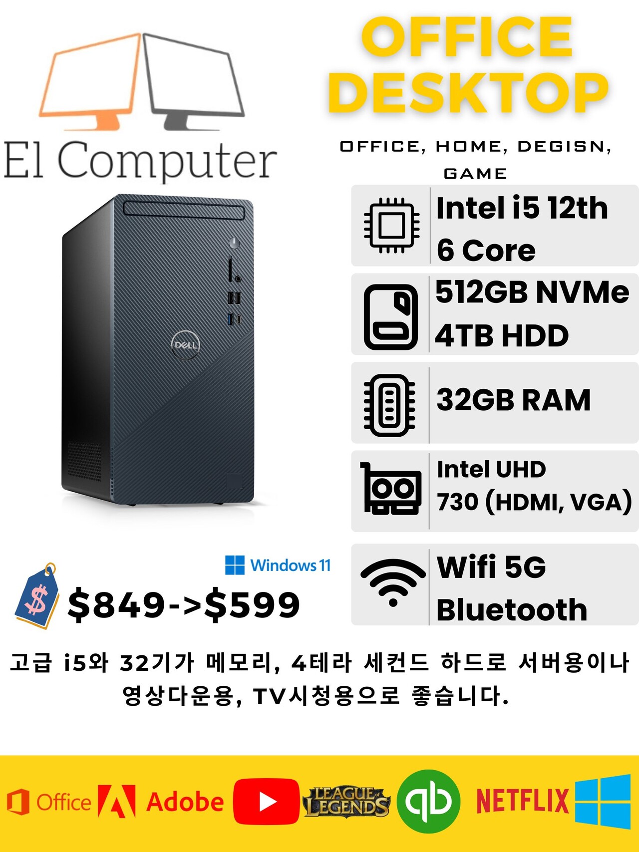 고급 i5와 32기가 메모리, 4테라 세컨드 하드로 서버용이나 영상다운용, TV시청용으로 좋습니다.