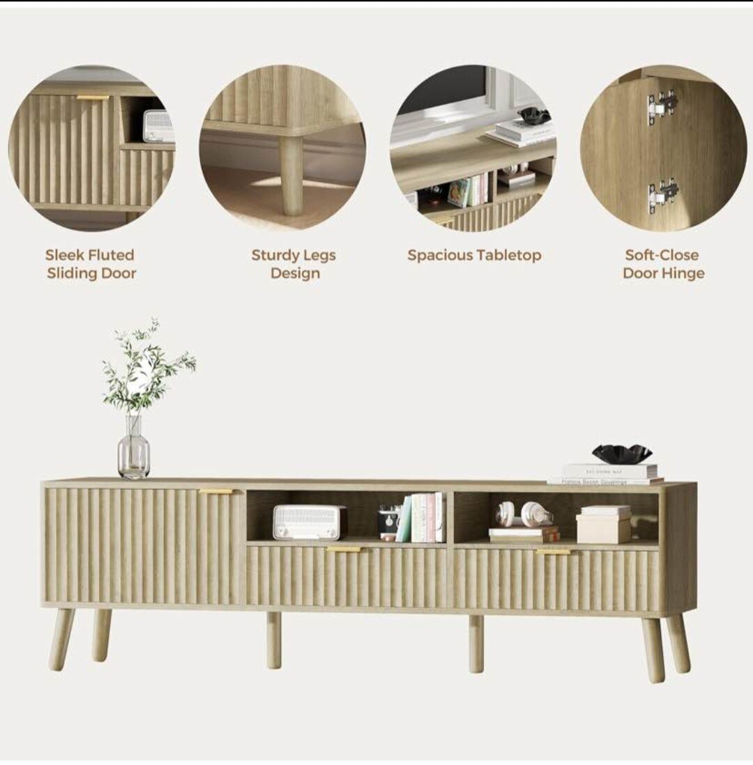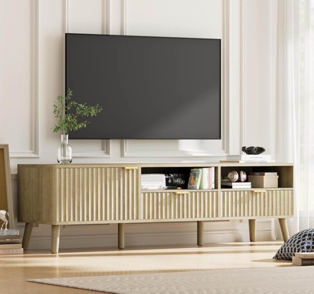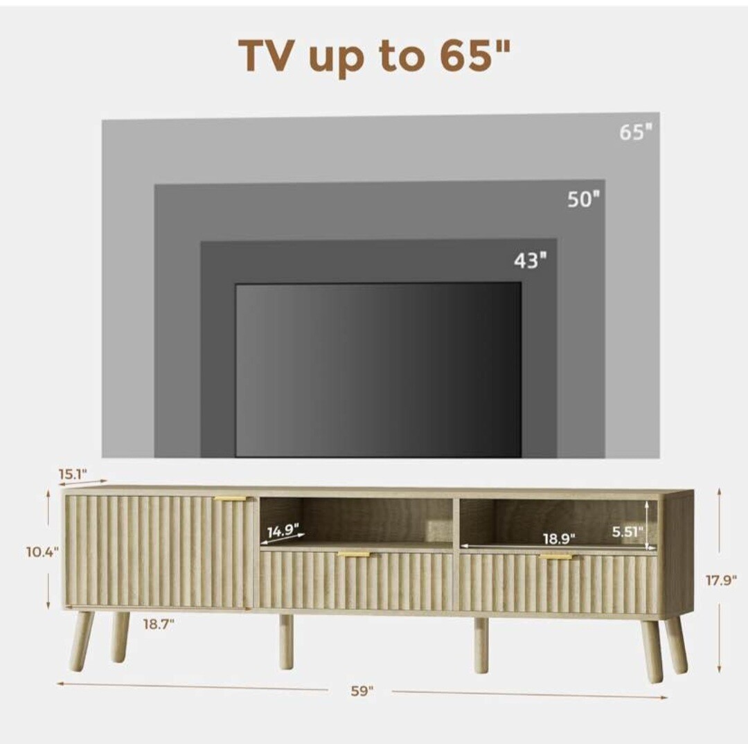 TV Stand 59" Mid Century Modern TV Console Entertainment Center with Open Storage Shelves TV Media Console Table for Living Room