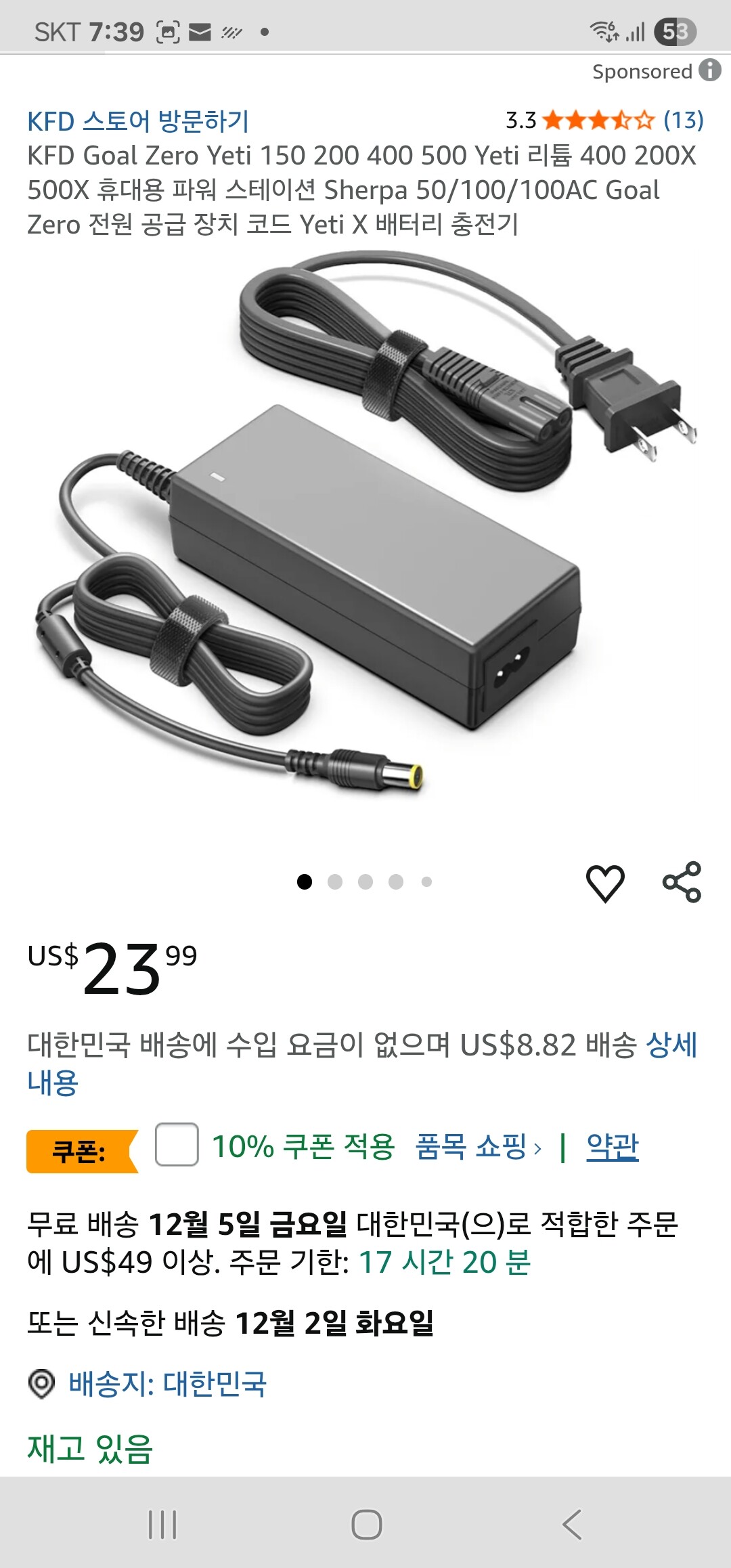 새제품 가격 세금 포함 500불 이상 합니다. 박스 충전하는 충전 어댑터 케이블은 없습니다. 모델명 치시고 충전 어댑터 검색하시면 20불 정도면 새거 사실수 있을겁니다. 거의 사용을 안해서 새상품 급의 컨디션 입니다.