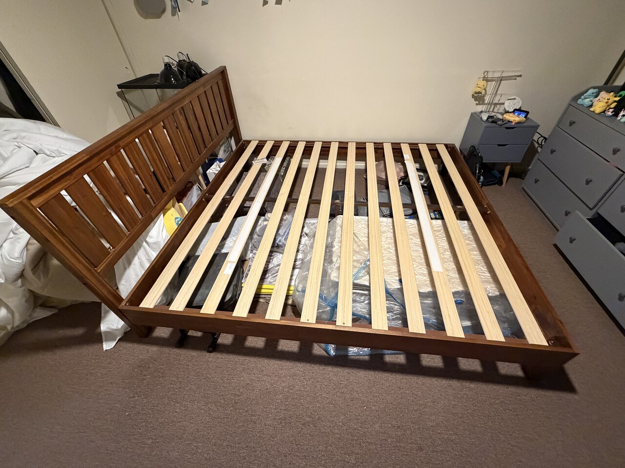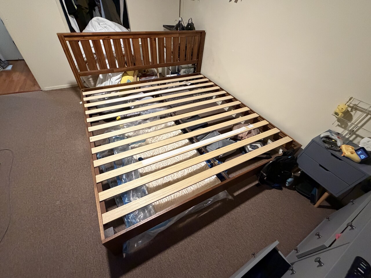우드로 제작된 킹 침대 프레임 판매합니다.