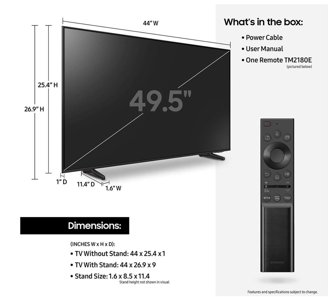화면에 스크레치 없고, Usb-C 빛충전식 리무트(건전지 필요 없어요), 파워코드, 매뉴얼 포함.