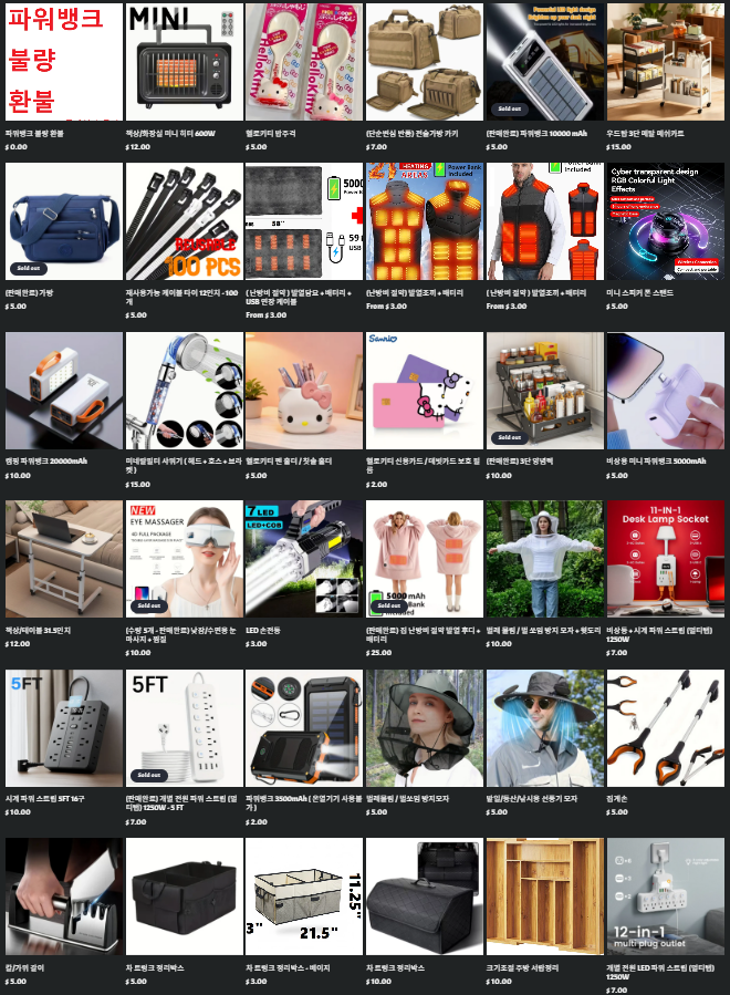 - 하루혹은 이틀에 물건 최소 하나씩 올립니다. ( 주로 저녁 9시 이후 )