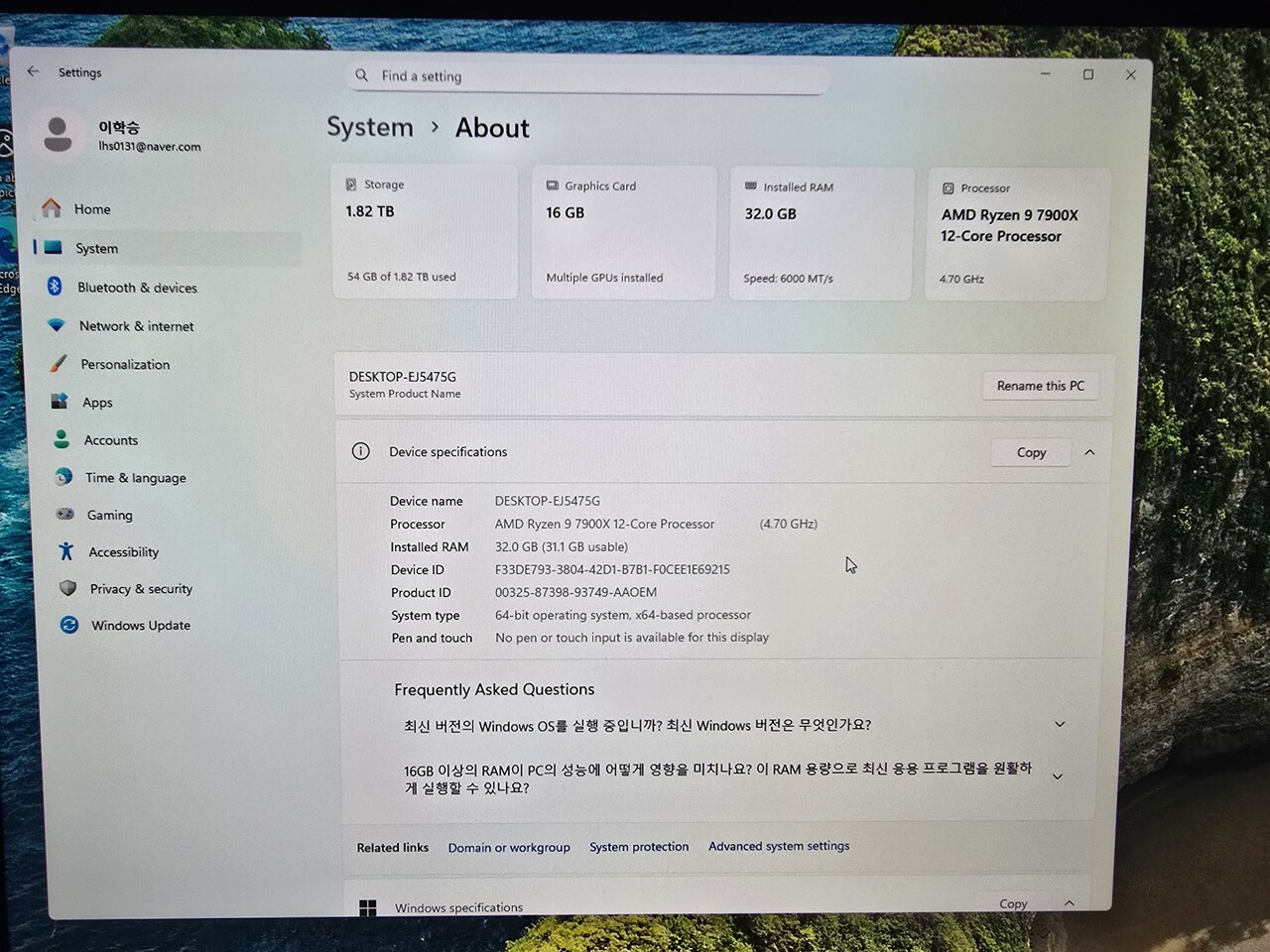 스펙은 라이젠 7900x