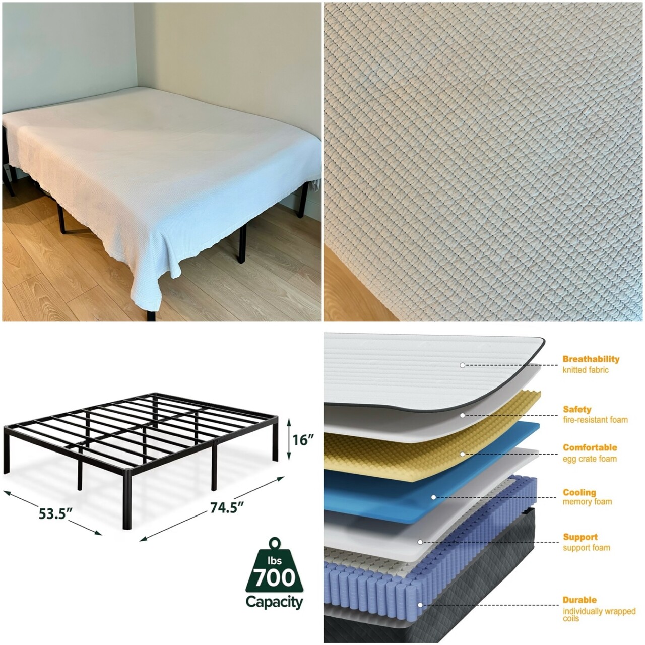 - Full Size 매트리스 + Bed Frame + 베개 2개 + 여름용 이불
