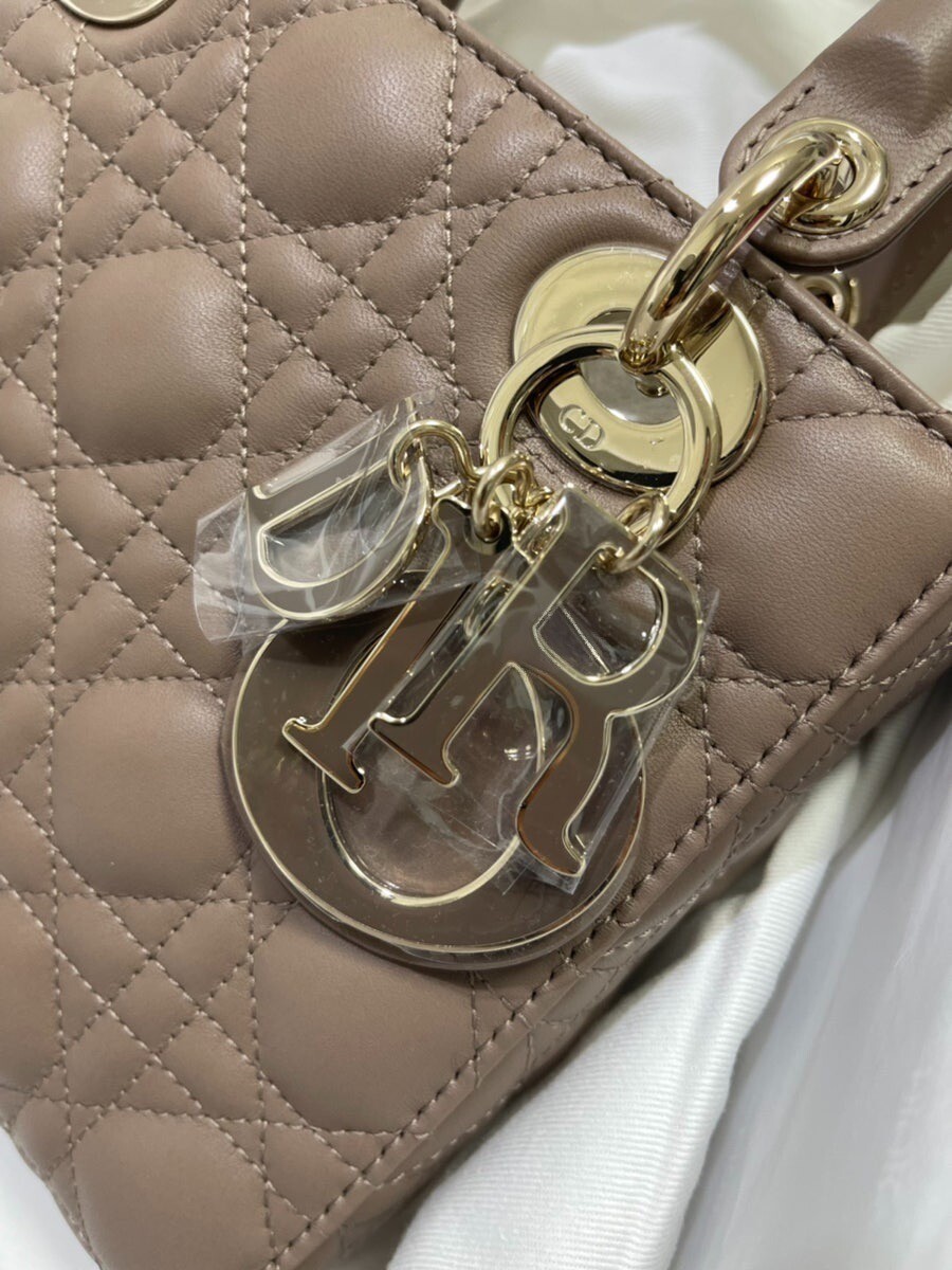 -웜 토프(Warm Taupe)  레이디 디올 스몰 까나쥬 램스킨 백