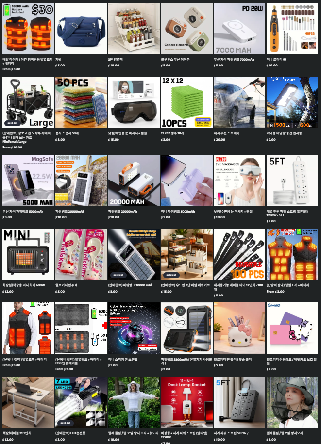 - 하루혹은 이틀에 물건 최소 하나씩 올립니다. ( 주로 저녁 9시 이후 )