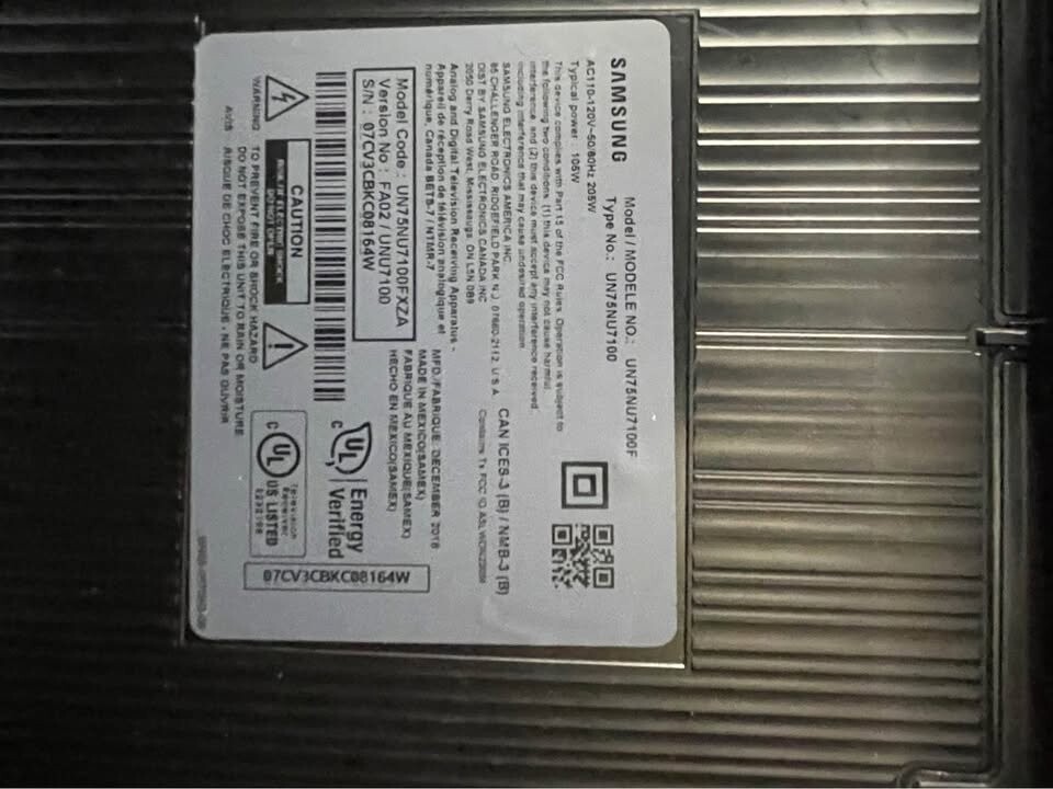 삼성 75인치 NU7100 티비 판매합니다 ($1,999 정가) 당일픽업 네고 가능