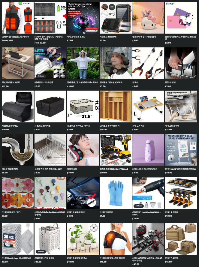 - 하루혹은 이틀에 물건 최소 하나씩 올립니다. ( 주로 저녁 9시 이후 )
