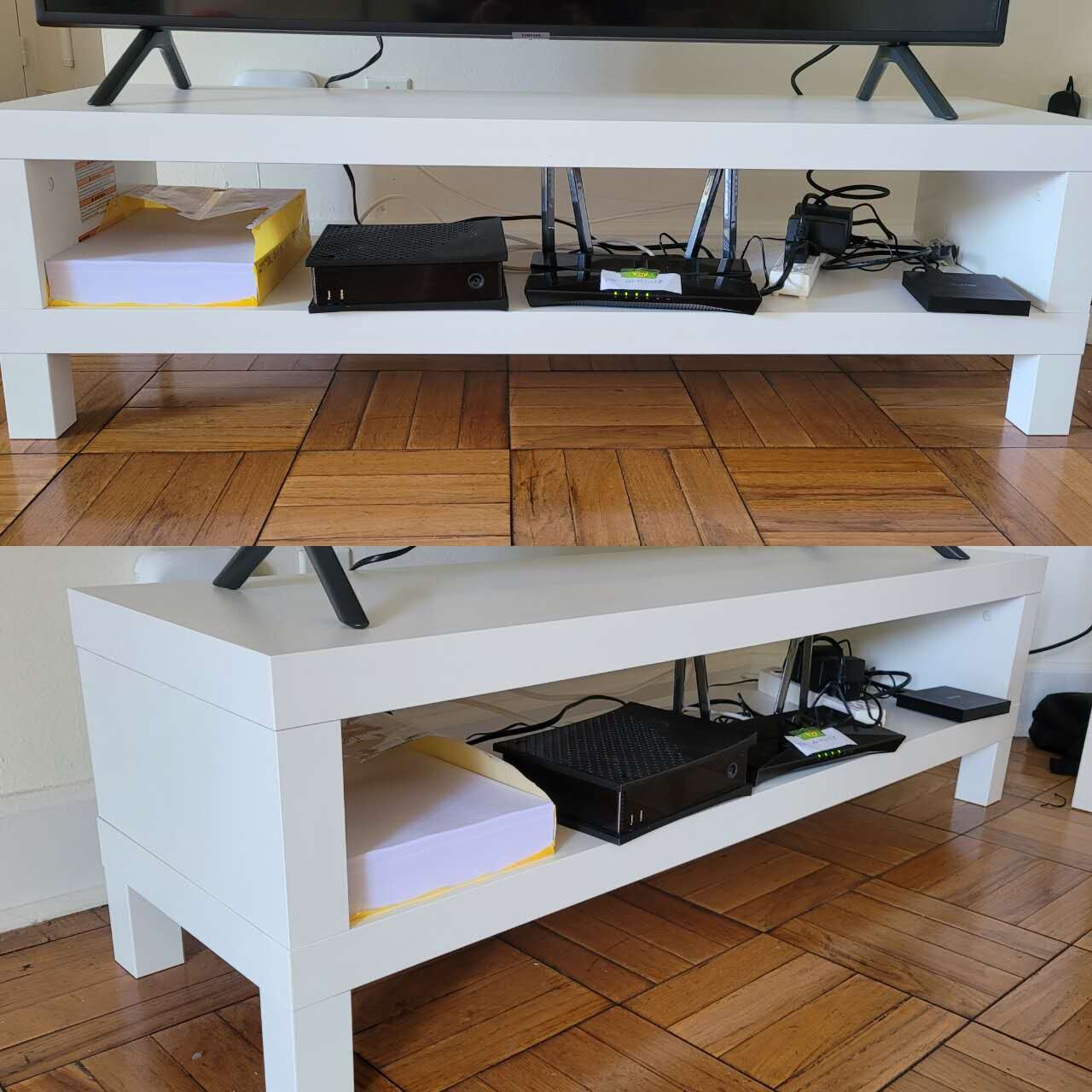 이케아 TV 테이블 사용한지 6개월정도 되여 상태 아주 좋아요. 사이즈 :길이*너비*높이 1200*360*350