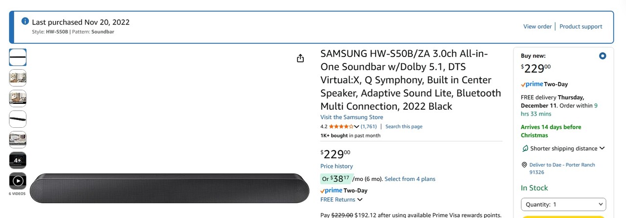 삼성에서 나온 3.0채널 사운드바 HW-S50B 모델입니다.