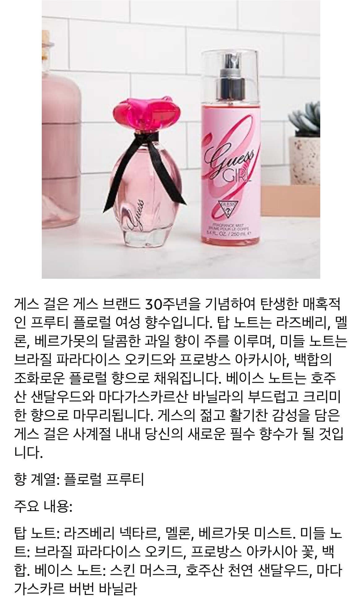 게스 걸 여성 향수 - 프루티 프로럴 향수