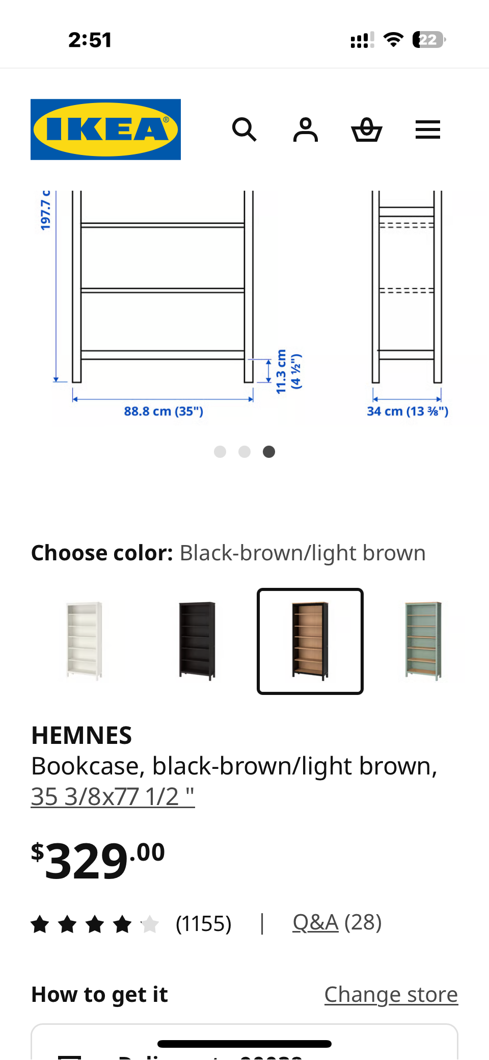 Bookcase, black-brown/light brown, 35 3/8x77 1/2 "