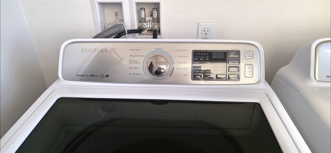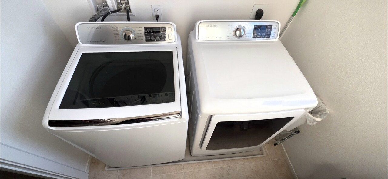 ● Samsung 5.5 cu. ft. Top Load Washer + 7.4 cu. ft. Smart ELECTRIC Dryer