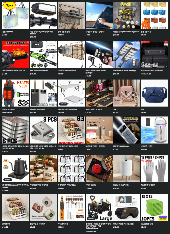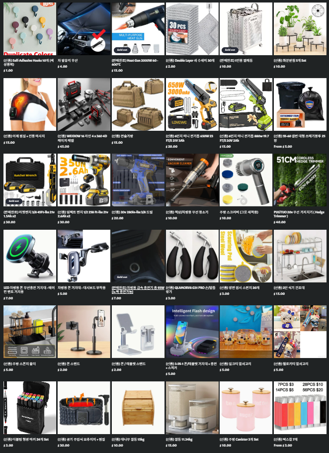 - 하루혹은 이틀에 물건 최소 하나씩 올립니다. ( 주로 저녁 9시 이후 )