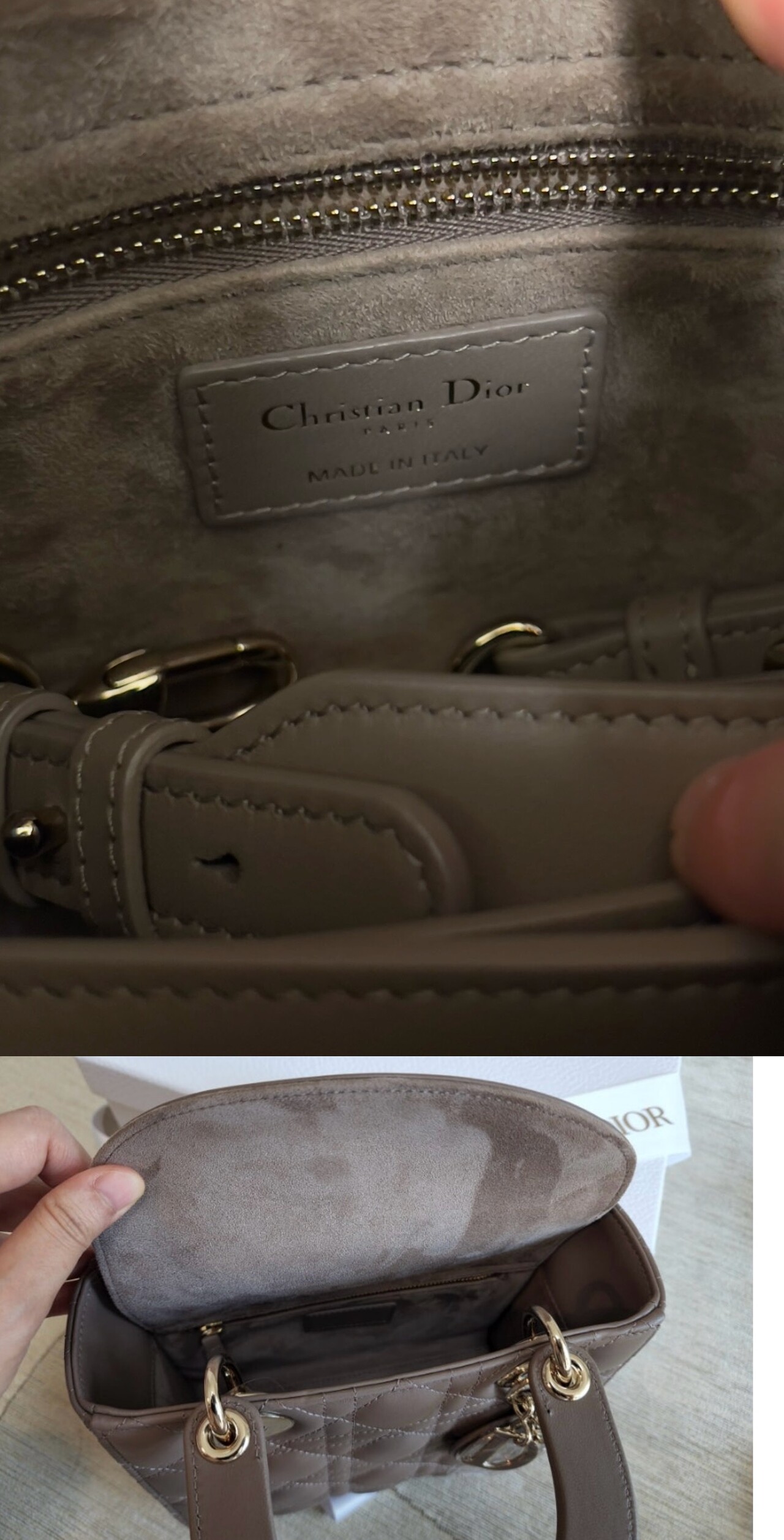 -까나쥬 퀼팅의 역할: 레이디백의 특징인 까나쥬(Cannage) 패턴은 가죽 표면을 다이아몬드 모양으로 퀼팅 처리한 것입니다. 이 퀼팅 처리 자체가 가죽 표면의 팽팽한 면적을 나누어 주어 미세한 스크래치나 주름이 덜 도드라져 보이게 하는 효과를 줄 수 있습니다.