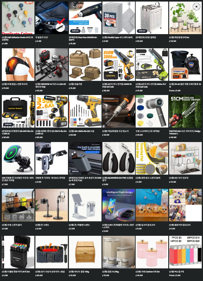 - 하루 혹은 이틀에 물건 최소 하나이상 올립니다. ( 주로 저녁 9시이후 )