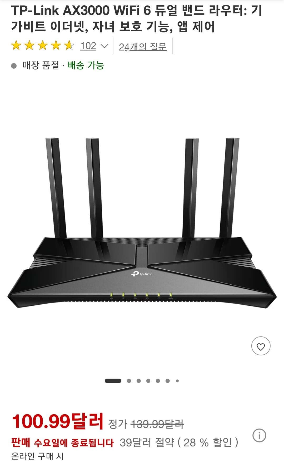 WI-FI 6 TP-LINK 11개월 그냥 TV테이블 밑에 두고 사용하여서 깨끗하고 새것과 별차이 없습니다.