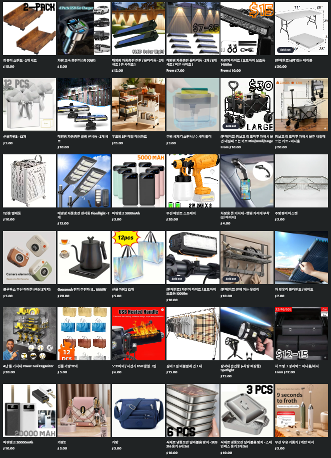 - 하루 혹은 이틀에 물건 최소 하나이상 올립니다. ( 주로 저녁 9시이후 )