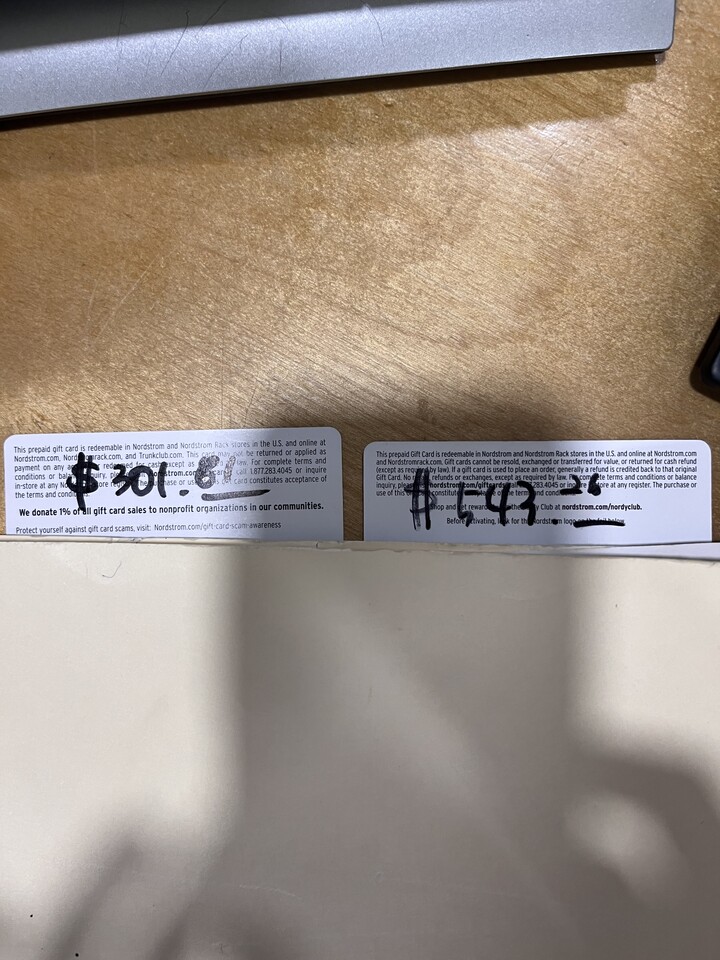 nordstrom gift card value $845.07
