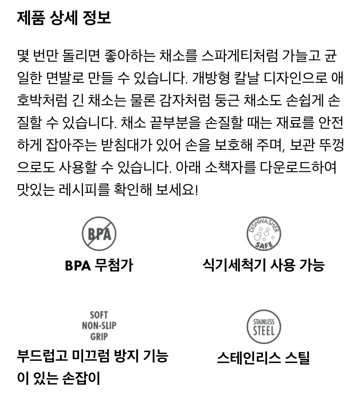 * 채소를 균일한 컬리 누들 형태로 만들 수 있어요