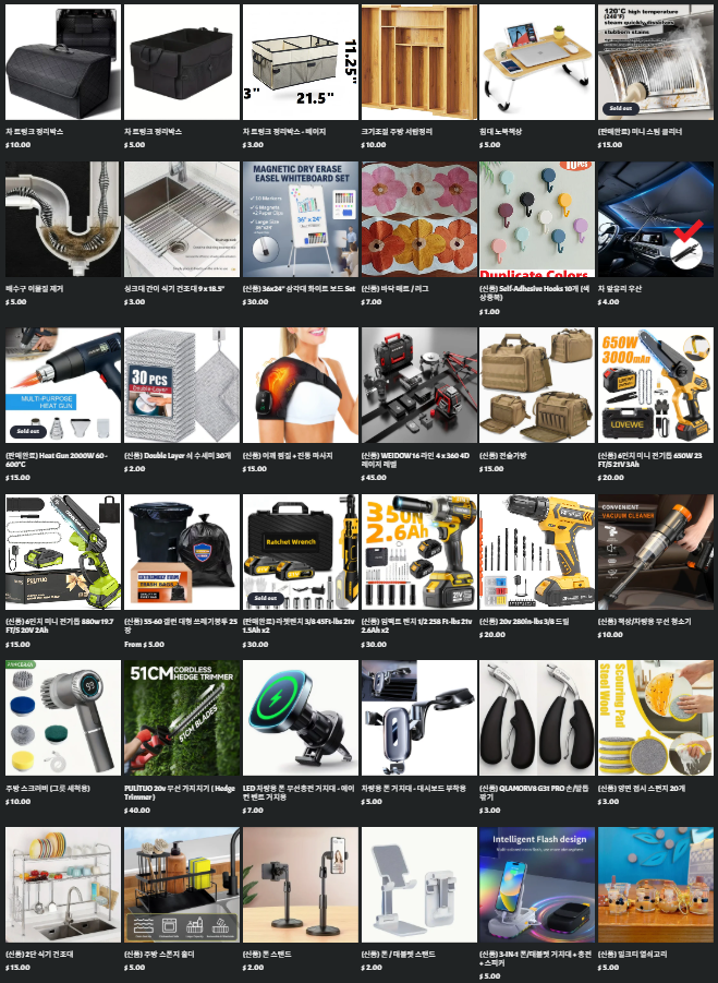 - 하루 혹은 이틀에 물건 최소 하나이상 올립니다. ( 주로 저녁 9시이후 )