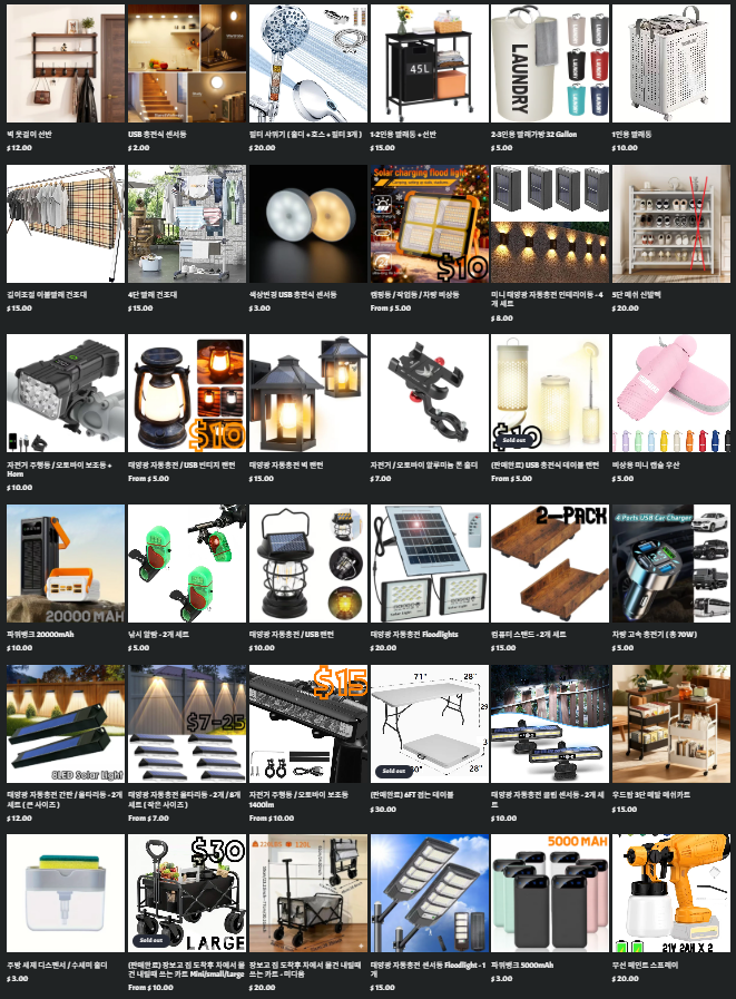 - 하루 혹은 이틀에 물건 최소 하나이상 올립니다. ( 주로 저녁 9시이후 )