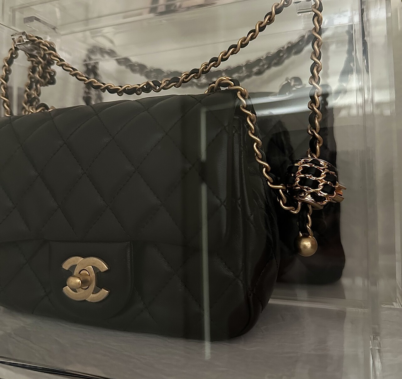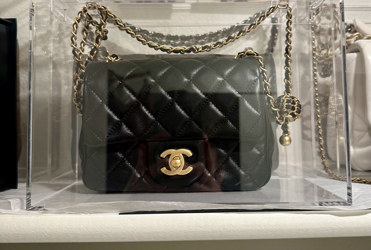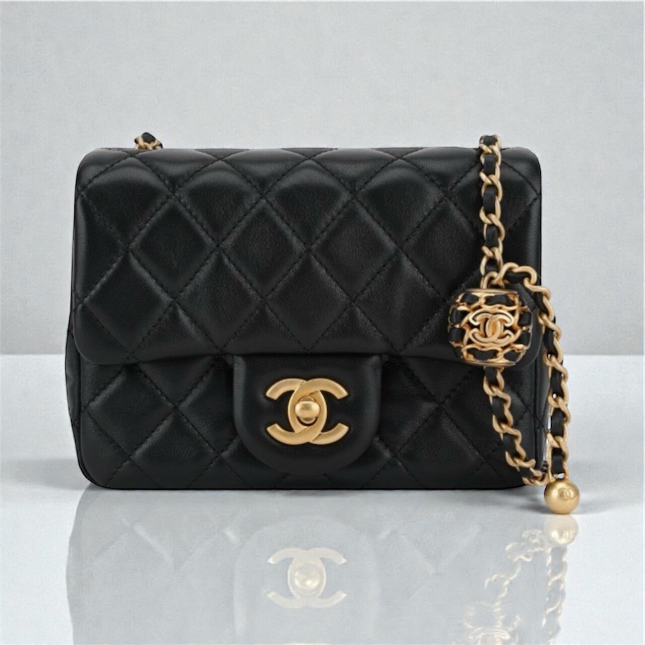 체인에 'CC 로고 볼' 디테일이 있어 일반 미니백보다 훨씬 비싸고 인기가 많습니다.
