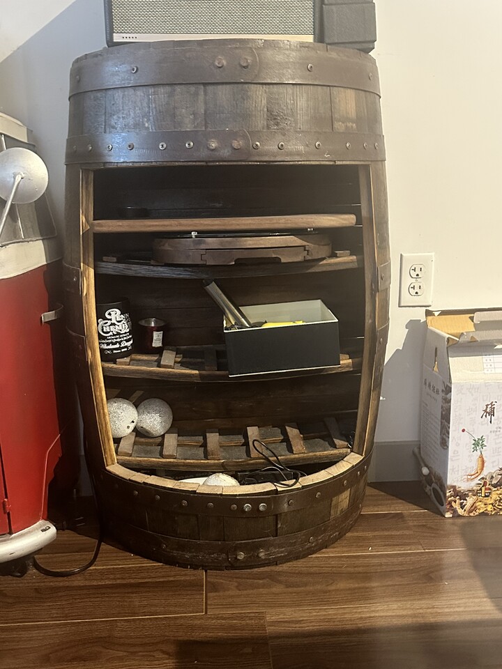 정말 포도주 통이 였던 배럴을 엔틱 시장에서 180불 주고 샀습니다. 이사로 인해 가격은 80불에 팔고 싶습니다