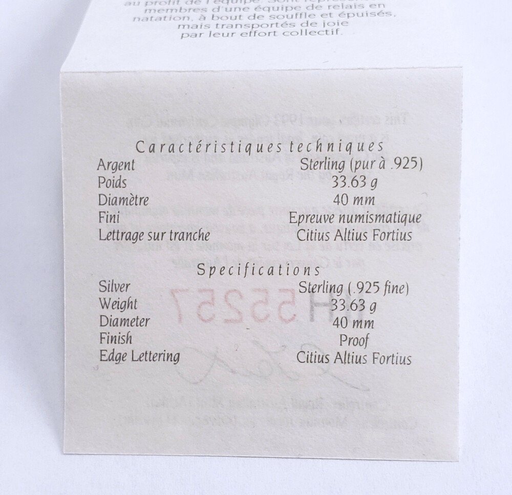 1993 올림픽 100 주년 기념 은화. 오스트레일리아에서 발행되어 한국에서 판매됨.