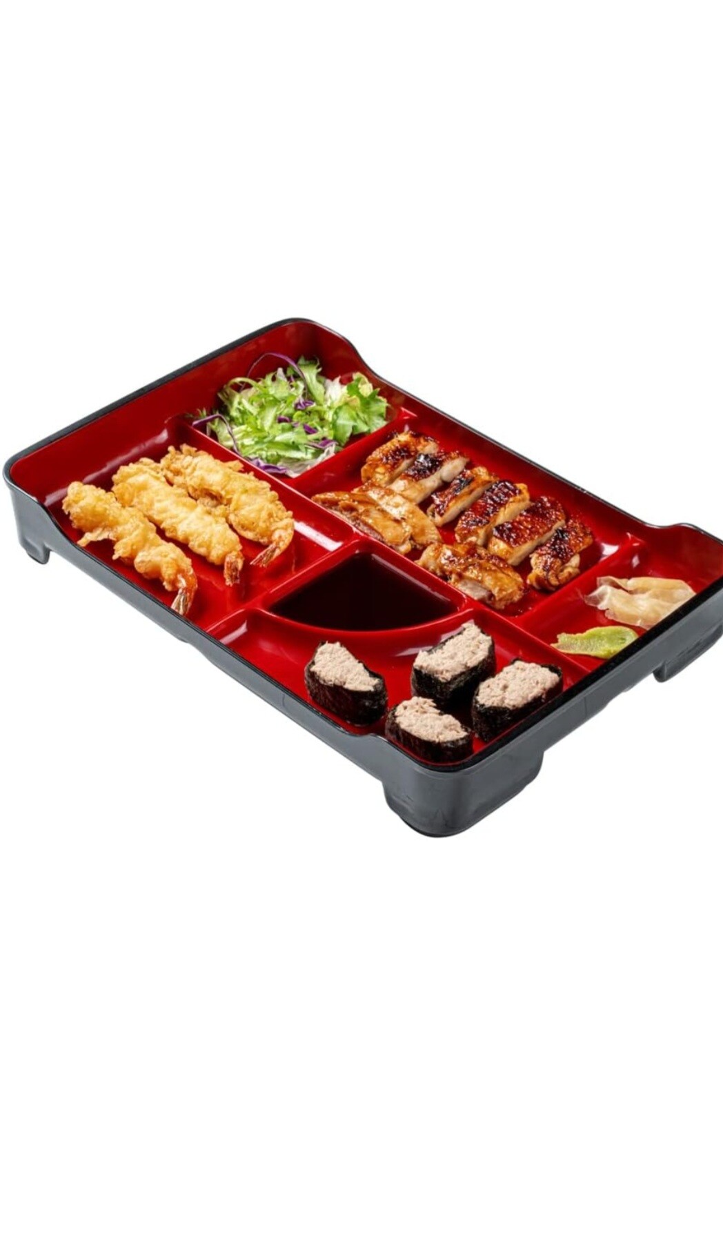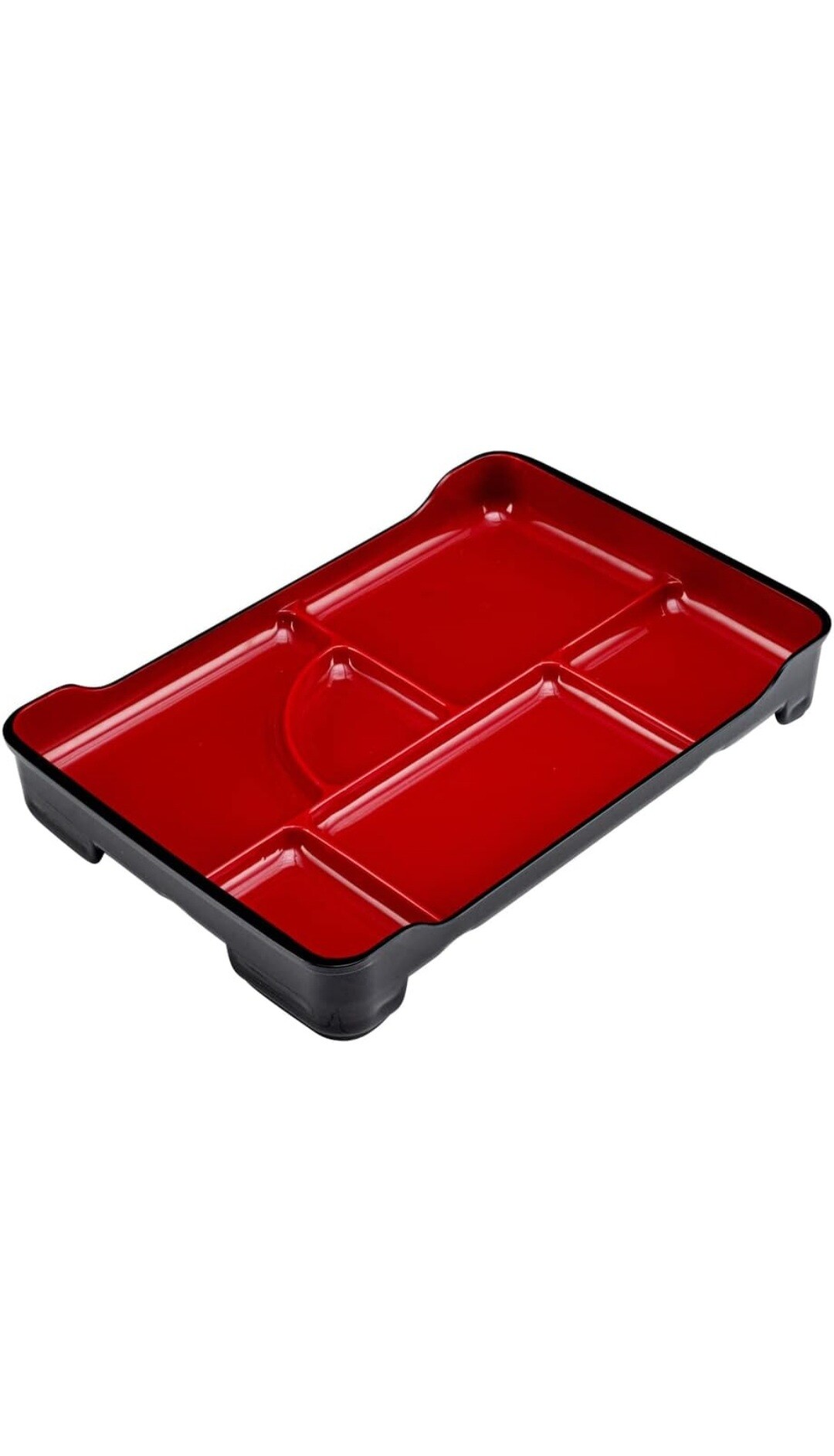 Japanese Style Adult Lunch Plate - With 5 Compartments Reusable Black & Red Plastic Separated Meal Plate