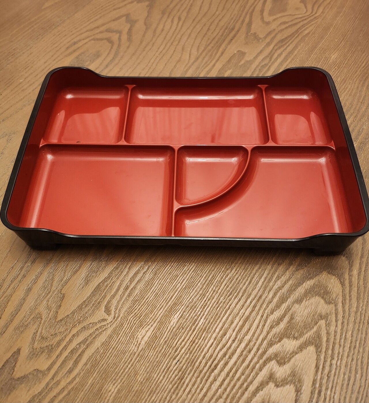 Japanese Style Adult Lunch Plate - With 5 Compartments Reusable Black & Red Plastic Separated Meal Plate