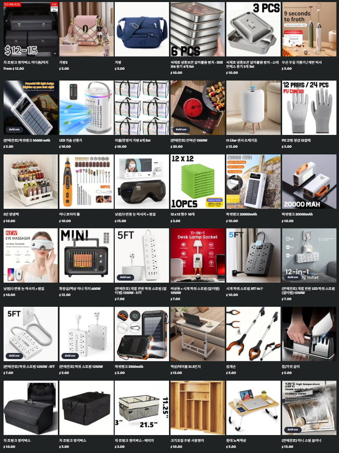 ❌ 하루 혹은 이틀에 물건 최소 하나이상 올립니다. ( 주로 저녁 9시이후 )