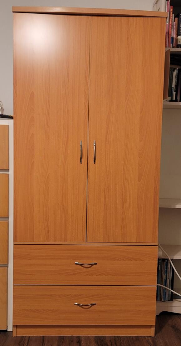 서랍2개와 봉이 있는 2도어 옷장 입니다.