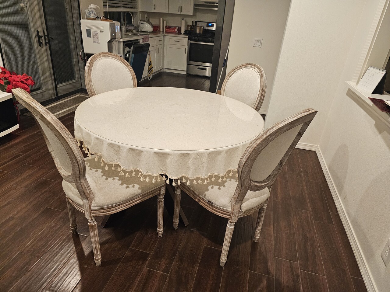 유리 흠집 없고 의자 4개 상태 깔끔하고 천의자 steam wash clean해서 깨끗해요.