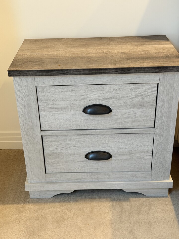 4. 침대 옆 사이드 수납장: 그레이 화이트 우드 40불 /