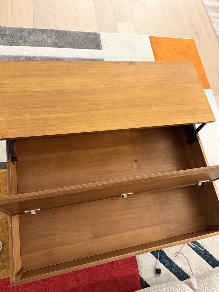 8. 쇼파 테이블: 우드. 열면 수납장됨. 70불