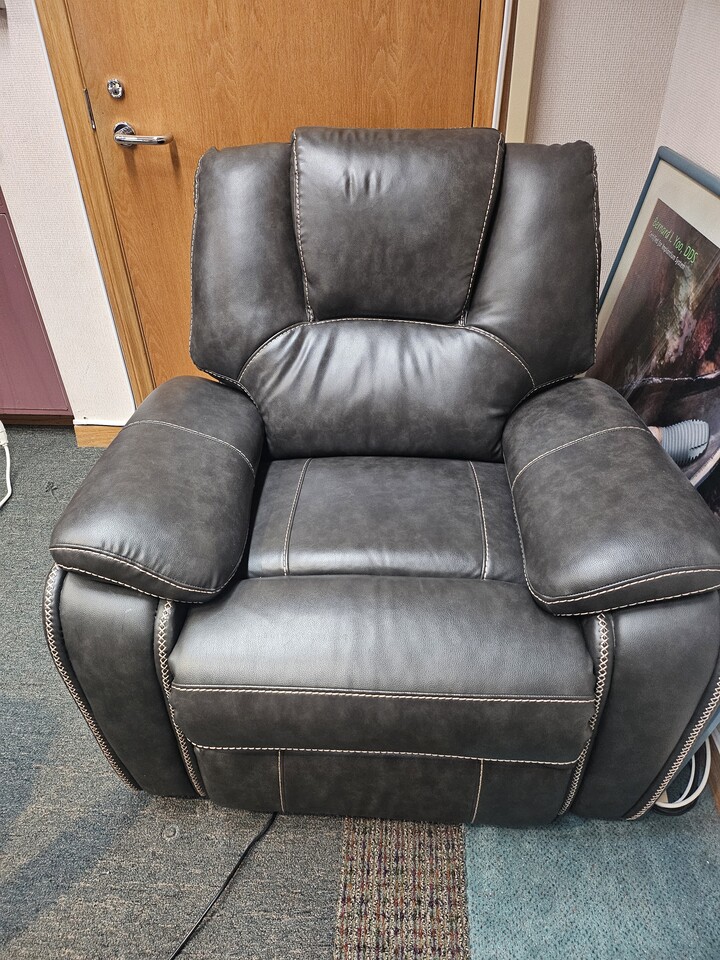 병원 정리, 원장실에서 가끔씩 사용하던 굉장히 편한 리클라이너 소파, 쿠션 상태 아주좋음, 커버 상태 아주좋음, 짙은 그레이 색,