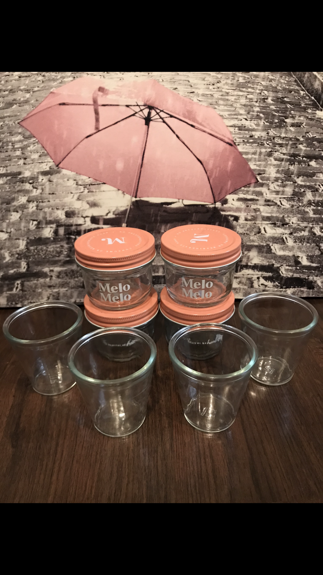 작은 유리병 2개,플라스틱 통 2개,예쁜 새 잼통4개,