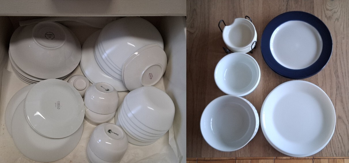 종류: 밥그릇 4개, 국그릇 15개 이상, 종지 2개, 18cm 접시 15개 이상, 20cm 접시 2개, 25cm 대접시 10개 이상,