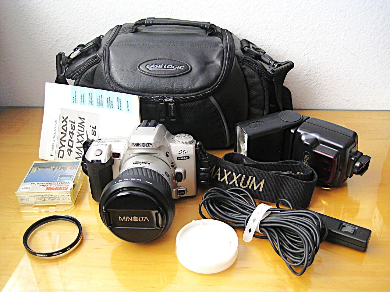 Original Strap, Lens Filter 2개, Auto Flash, Remote, Carrying Bag 등 사진에 나와 있는 Accessories 다 포함.
