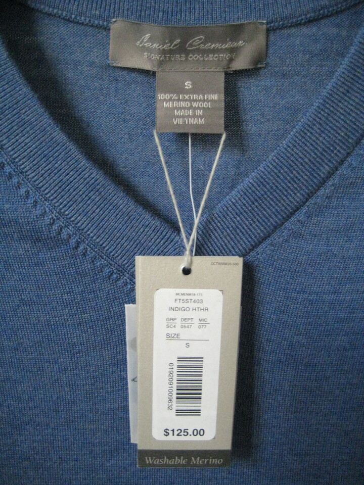 100% Extra Fine Merino Wool V-Neck Sweater 입니다.